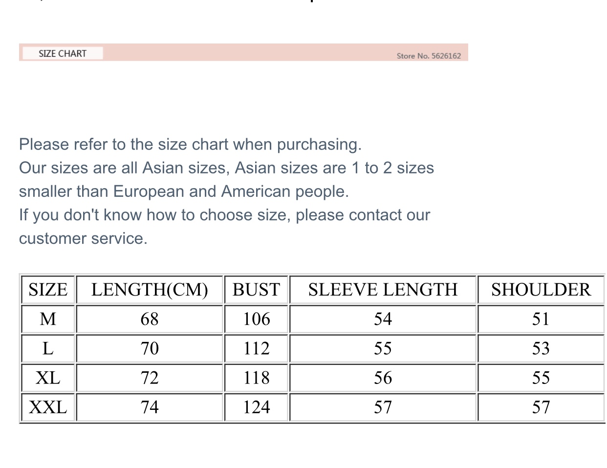 As Shown On Size Chart