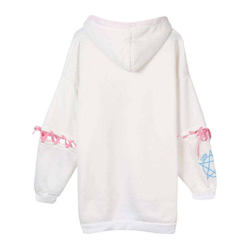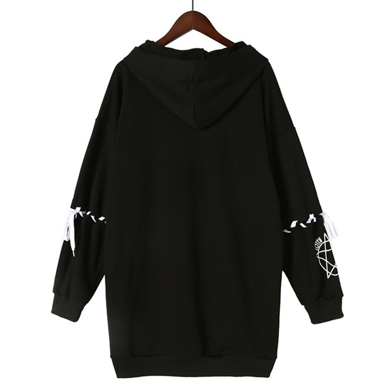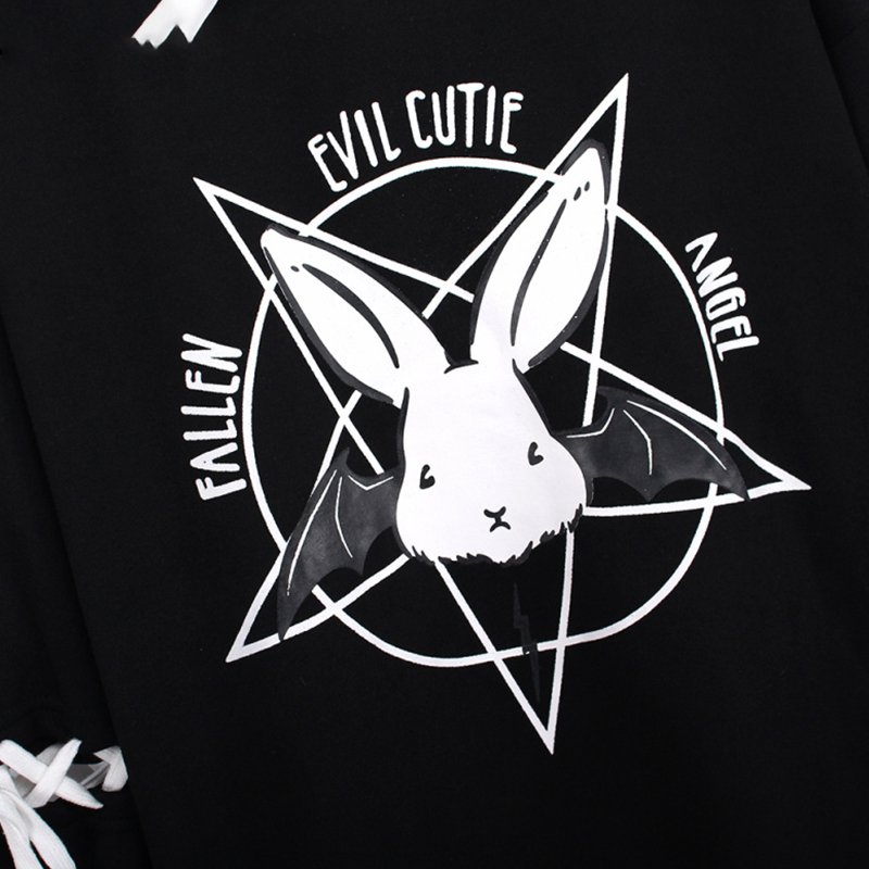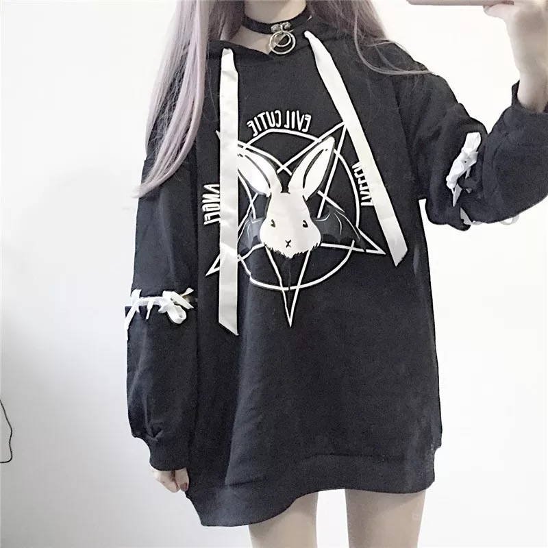 Cute Rabbit Evil Pentagon Lace Up Long Sleeve Hoodie Oversize Sweater Sweatshirt Pullover Jumper E-Girl Kawaii Korean Japanese Harajuku Streetwear