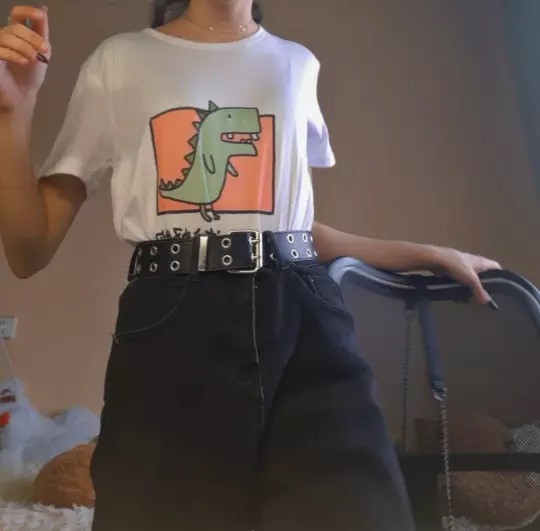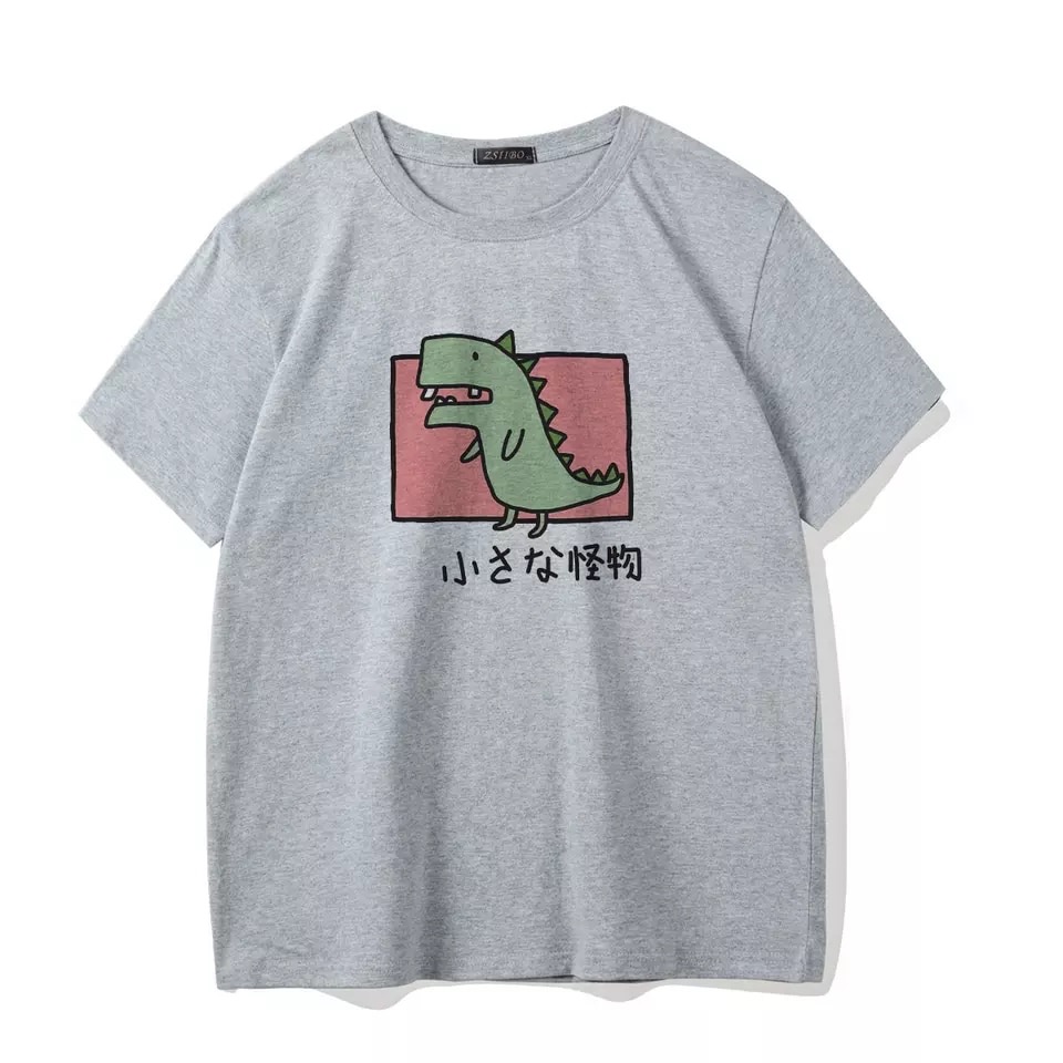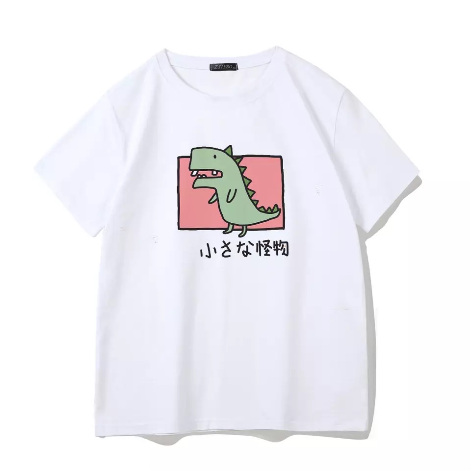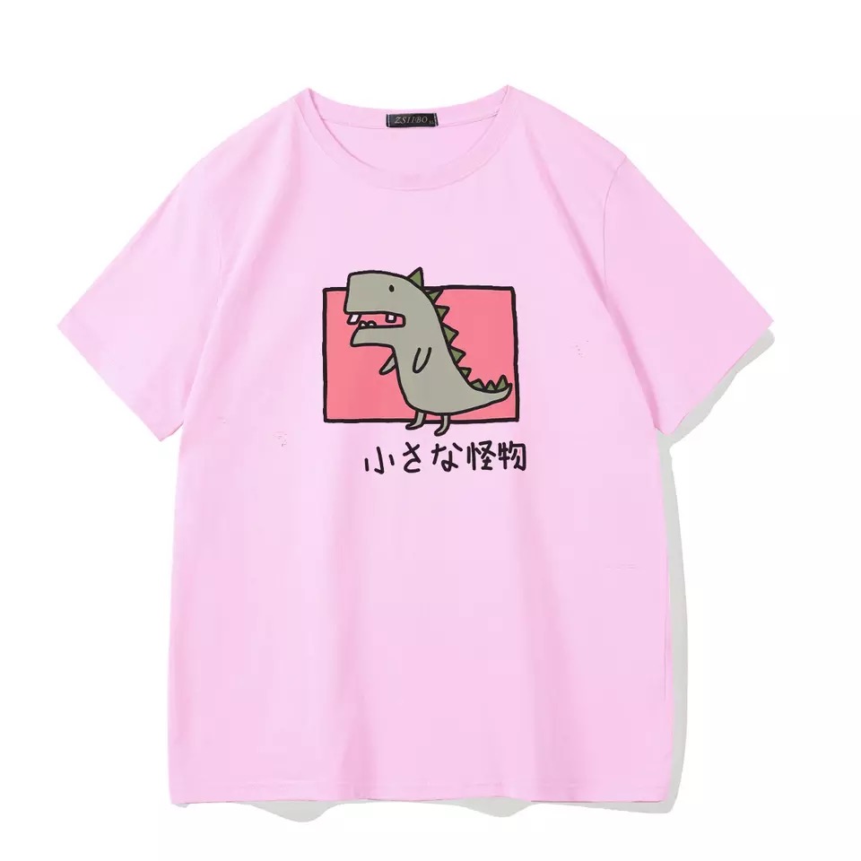 Cute Vintage Dinosaur Print Cartoon Short Sleeve Shirt T-shirt Tee Punk Funny Sweet Summer Casual E-Girl Kawaii Korean Japanese Harajuku Streetwear