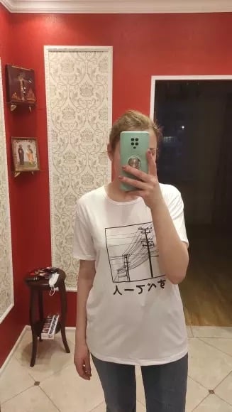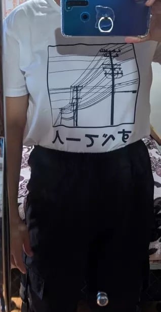 Cute White Funny Japan Power Line Print Loose Short Sleeve Short T-shirt Tee Top Summer Casual E-Girl Kawaii Korean Japanese Harajuku Streetwear