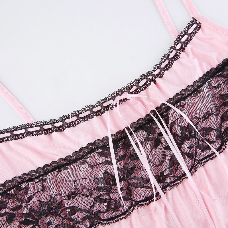 Cute 90s Light Pink Lace Sleeveless Ruffle Frill Tie Up Crop Top Camisole Tank Shirt Summer Party E-Girl Kawaii Korean Japanese Harajuku Streetwear