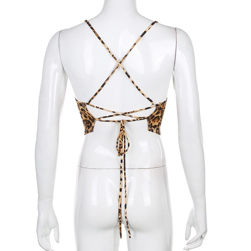 Sexy Leopard Backless Camisole Lace Up Spaghetti Strap Tank Crop Top Bandage Open Back Aesthetic E-Girl Kawaii Korean Japanese Harajuku Streetwear