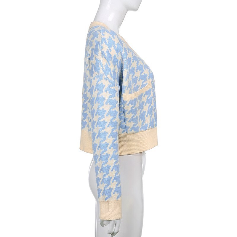 Cute Vintage Plaid Button Cardigan V Neck Knit Cropped Long Sleeve Shirt Sweater Pullover Aesthetic E-Girl Kawaii Korean Japanese Harajuku Streetwear
