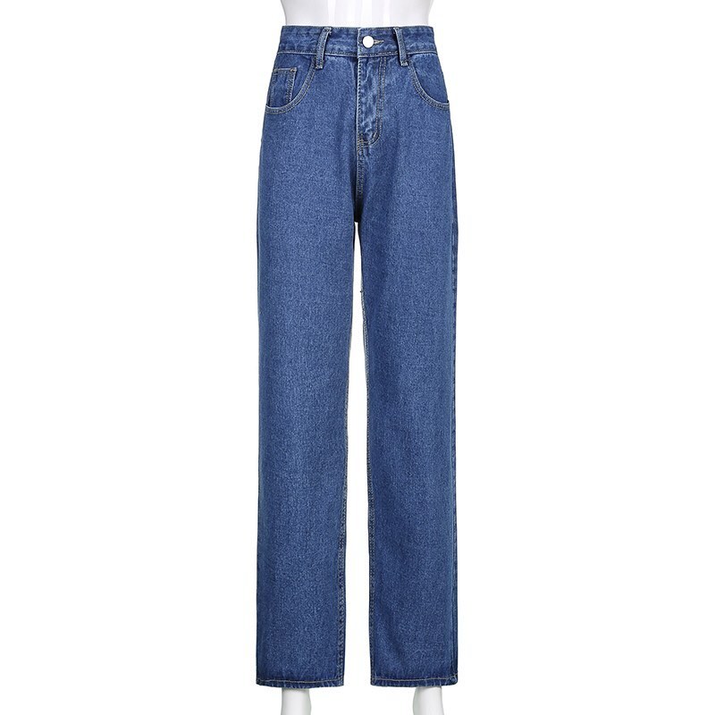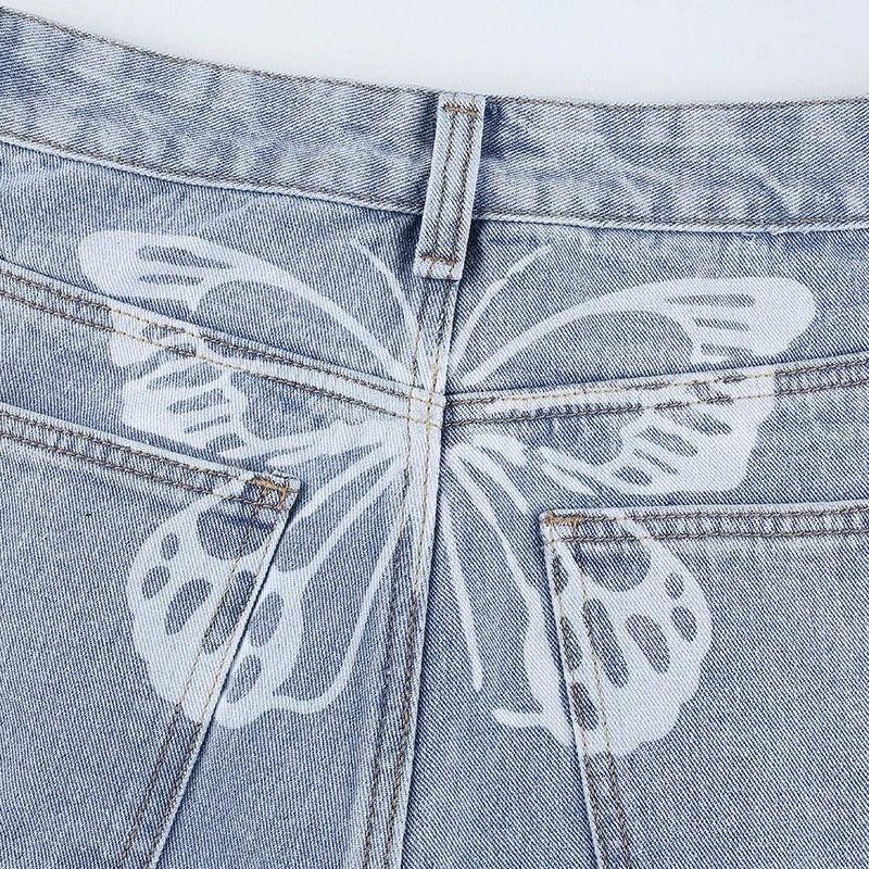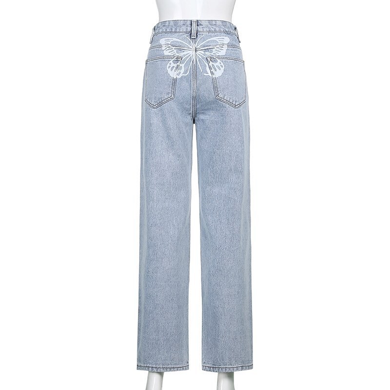 Cute 90s Buttery Print Casual Baggy Straight High Waist Mom Blue Denim Jean Bottom Pant Aesthetic E-Girl Kawaii Korean Japanese Harajuku Streetwear