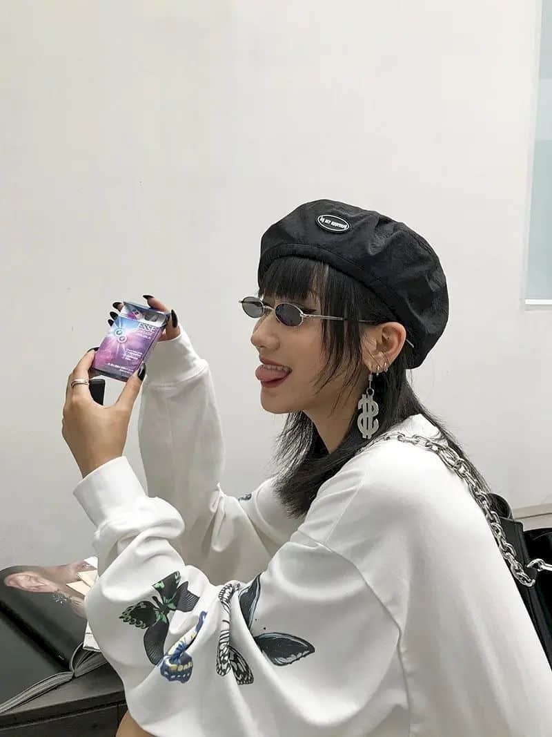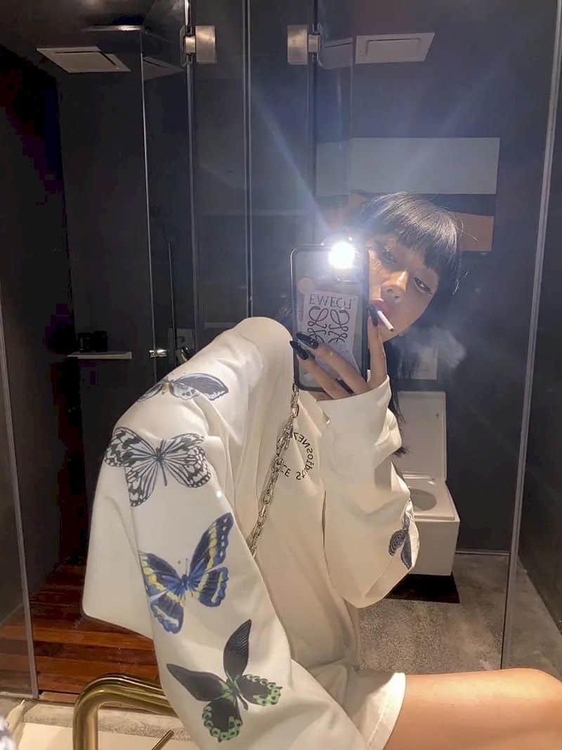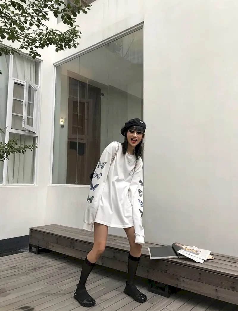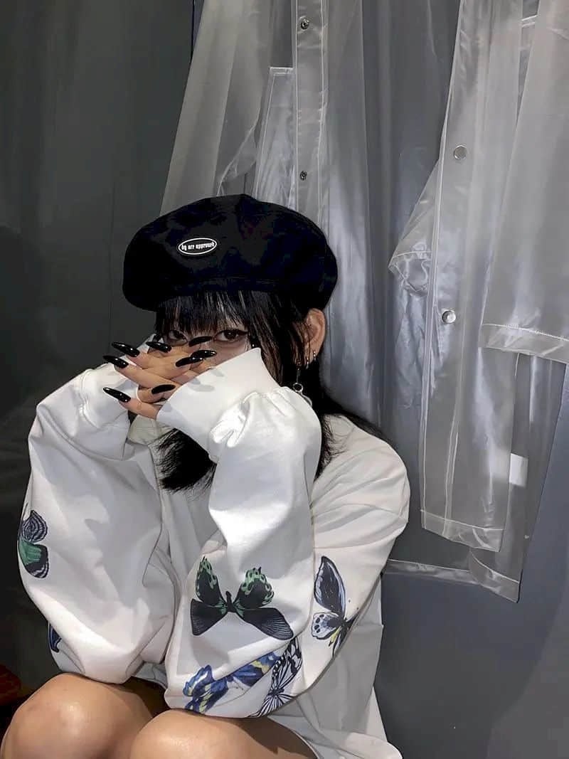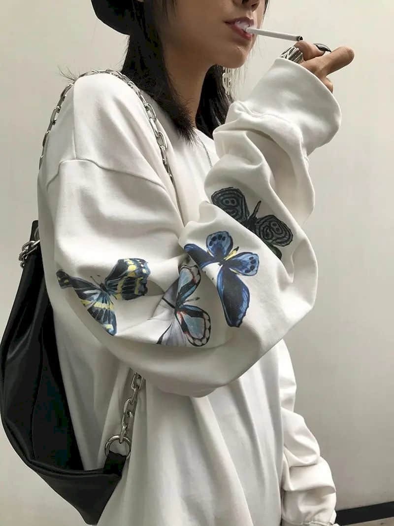 Cute Vintage White Butterfly Print Long Sleeve Shirt Sweatshirt Loose Oversized Autumn Aesthetic E-Girl Kawaii Korean Japanese Harajuku Streetwear