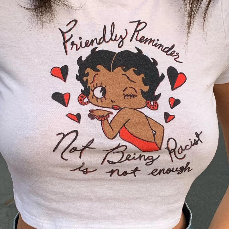 Cute 90s Vintage Betty Girl Cartoon Print White Short Sleeve Tshirt Crop Top Aesthetic Casual Summer E-Girl Kawaii Korean Japanese Haraju