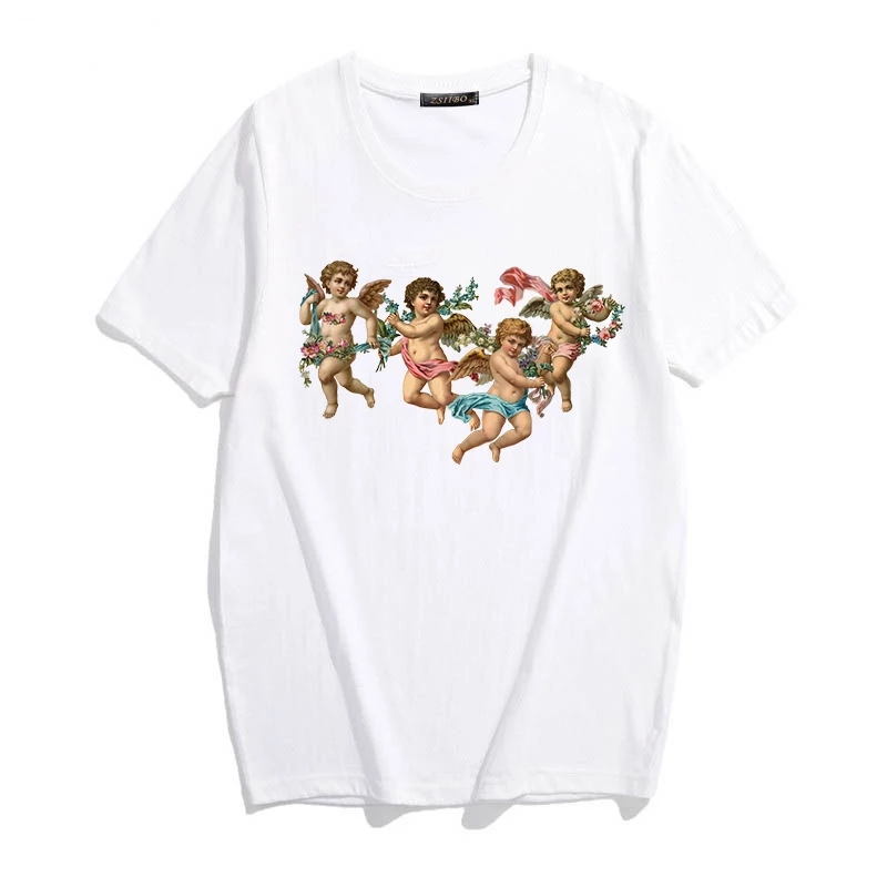 Cute 90s Angel Art Cartoon Print Short Sleeve T-shirt Vintage Punk Aesthetic Casual Summer E-Girl Kawaii Korean Japanese Haraju