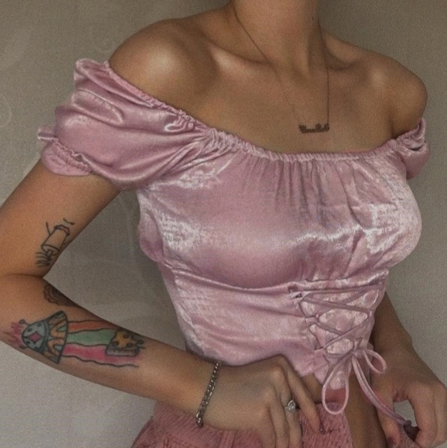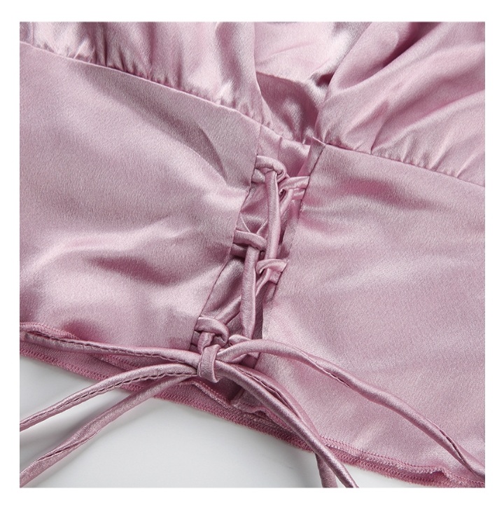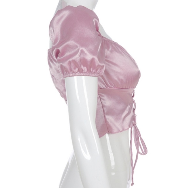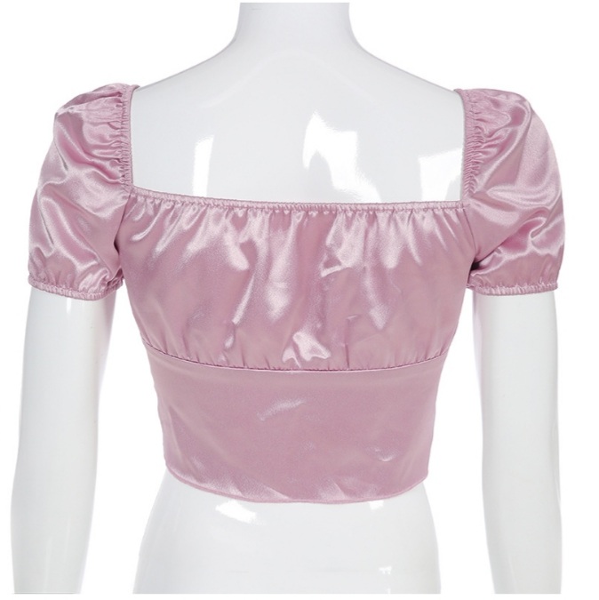Cute Vintage Pink Silky Satin Short Sleeve Shirt Crop Top Lace Up Elegant Aesthetic Casual Summer E-Girl Kawaii Korean Japanese Harajuku