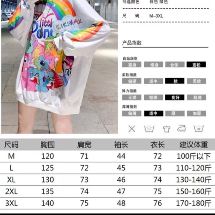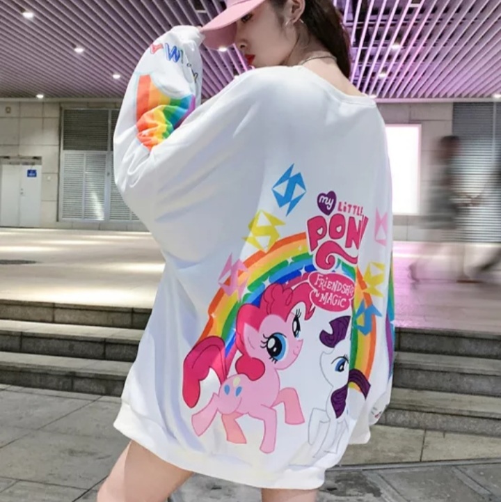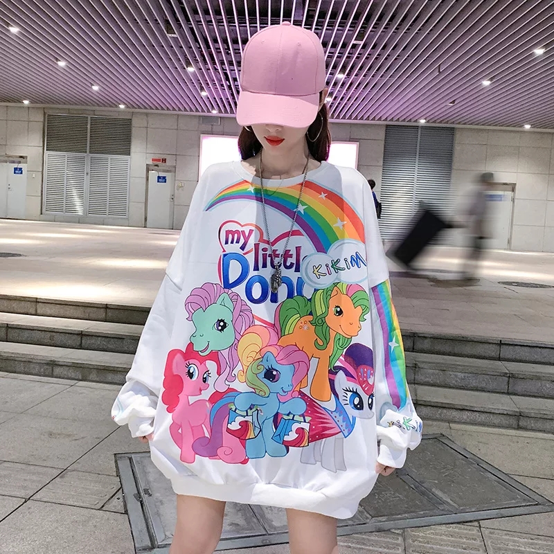 Cute Rainbow Colorful Pony Cartoon Print Oversized Sweatshirt Long Sleeve Shirt Pullover Aesthetic Casual E-Girl Kawaii Korean Japanese Harajuku