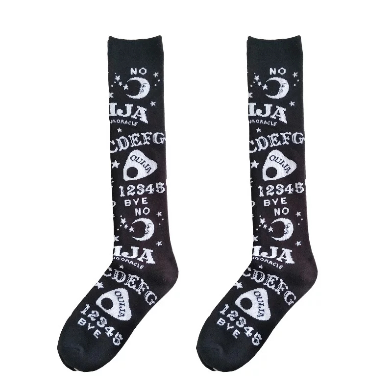 Cute Black Ouija Board Magic Star Moon Print Socks Punk Goth Aesthetic Casual E-Girl Kawaii Korean Japanese Harajuku
