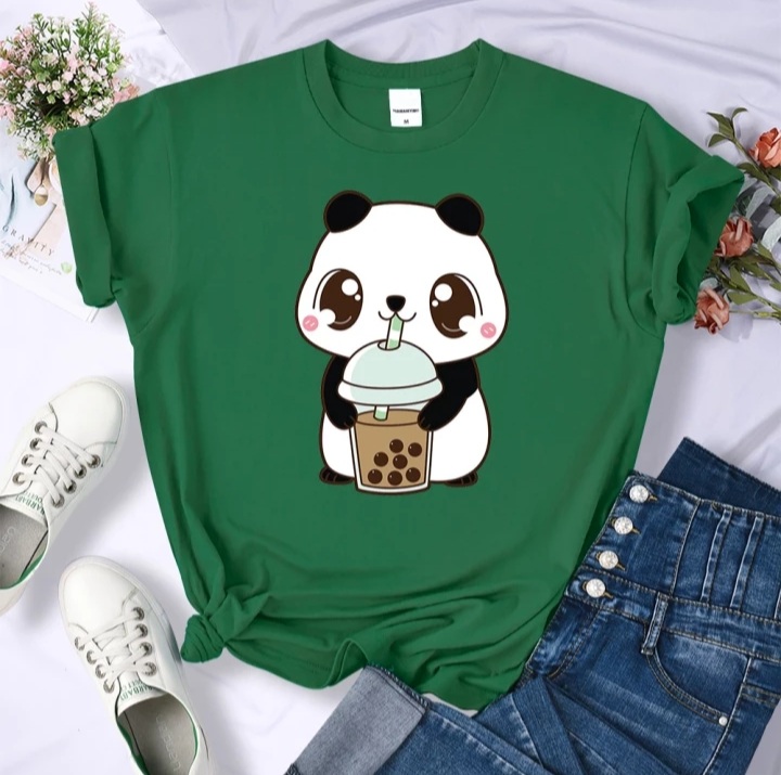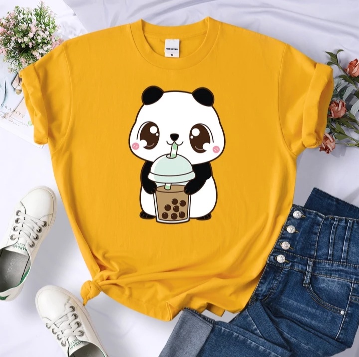 Cute Panda Bear Boba Bubble Milk Tea Graphic Cartoon Print Loose Short Sleeve T-shirt Aesthetic Casual Summer E-Girl Kawaii Korean Japanese Harajuku