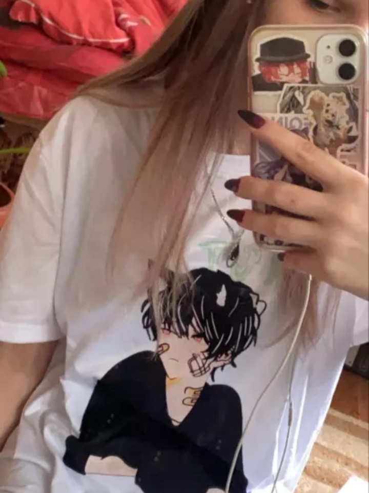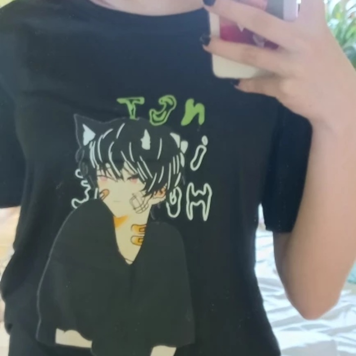 Cute Anime Boy Cat Ears Cartoon Graphic Print Oversize Short Sleeve Shirt Summer Aesthetic Casual E-Girl Kawaii Korean Japanese Harajuku