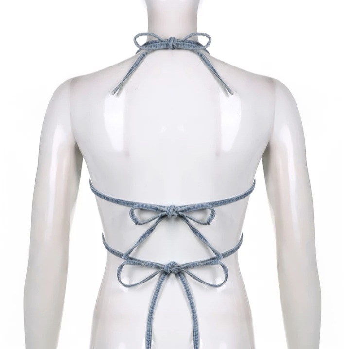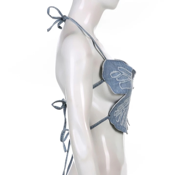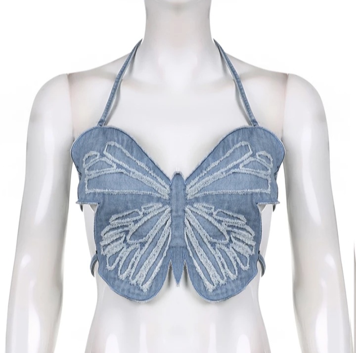 Cute Sexy Butterfly Denim Backless Crop Top Sleeveless Shirt Party Beach Summer Aesthetic Casual E-Girl Kawaii Korean Japanese Harajuku