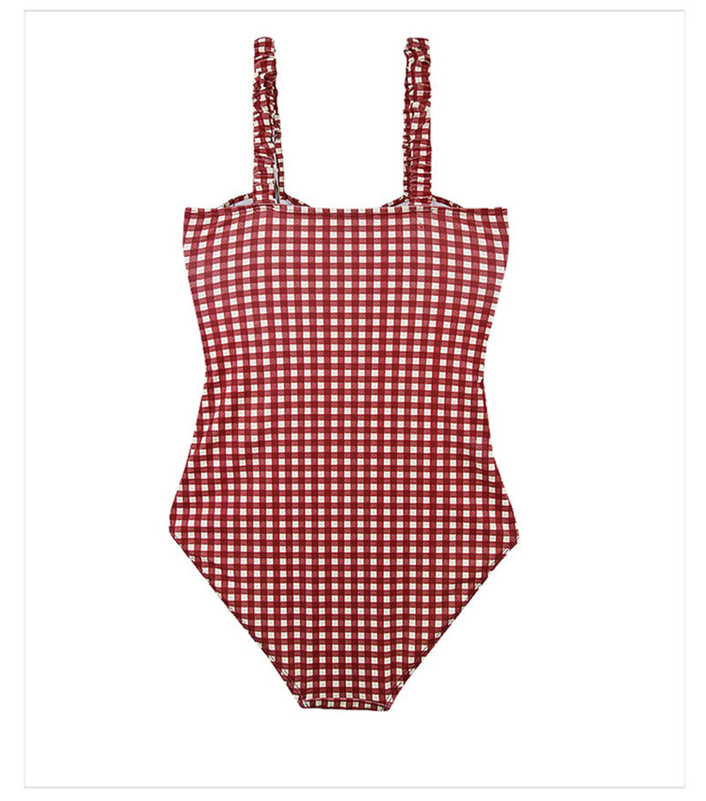 Sexy Red Plaid Push Up One Piece Swimsuit Aesthetic Casual E-Girl Kawaii Korean Japanese Harajuku