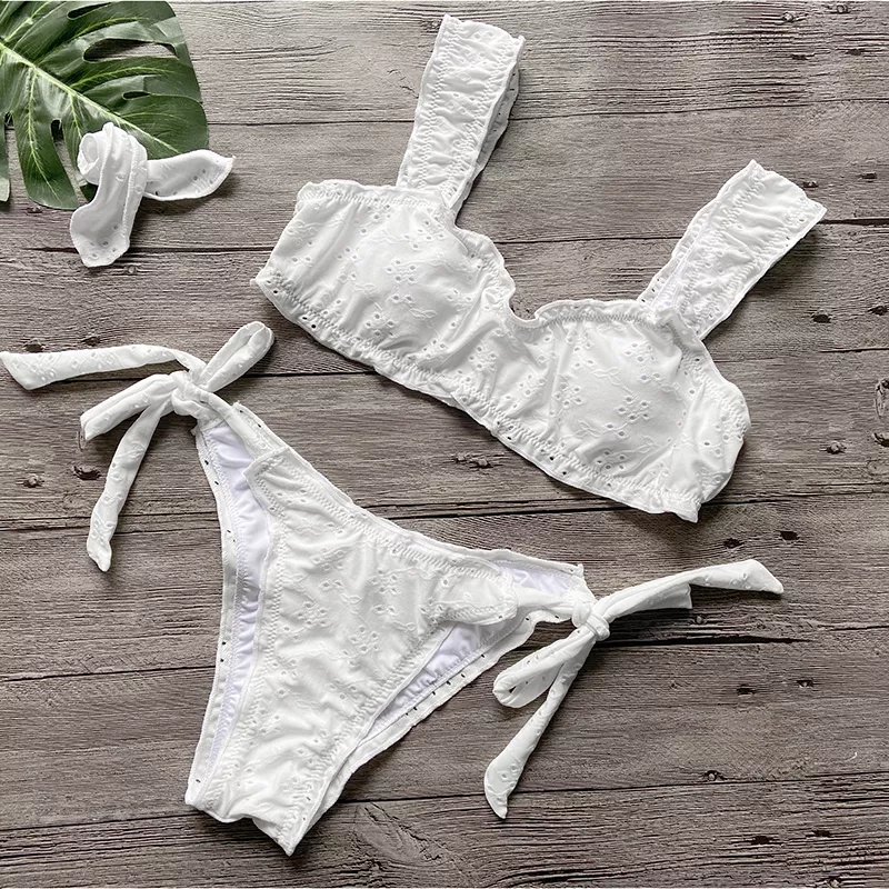 2PCS Yellow Ruffled Push Up Swimsuit Bikini Set Aesthetic Casual E-Girl Kawaii Korean Japanese Harajuku