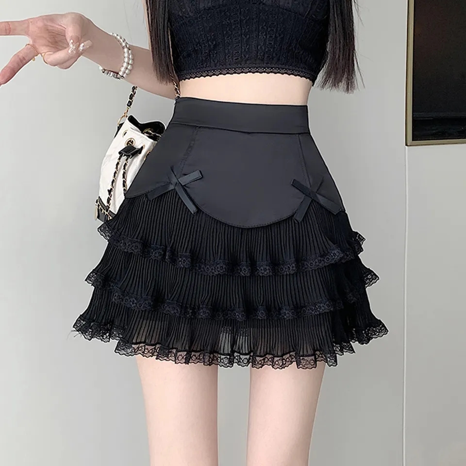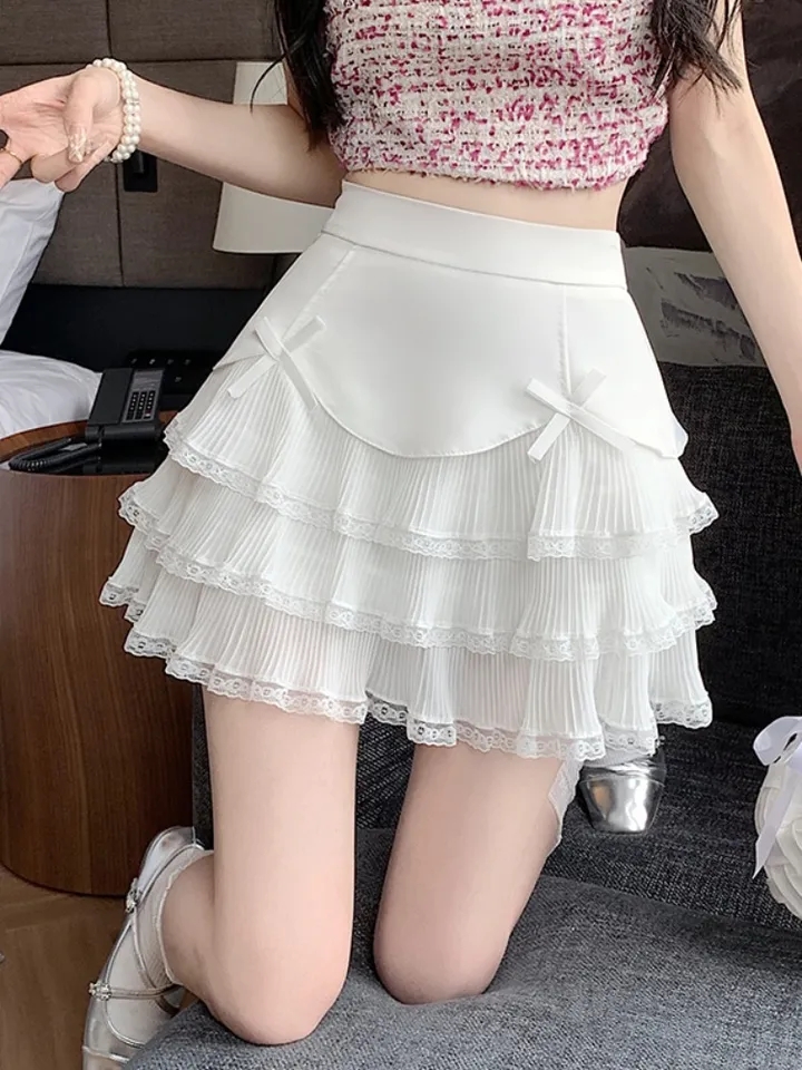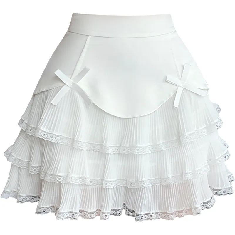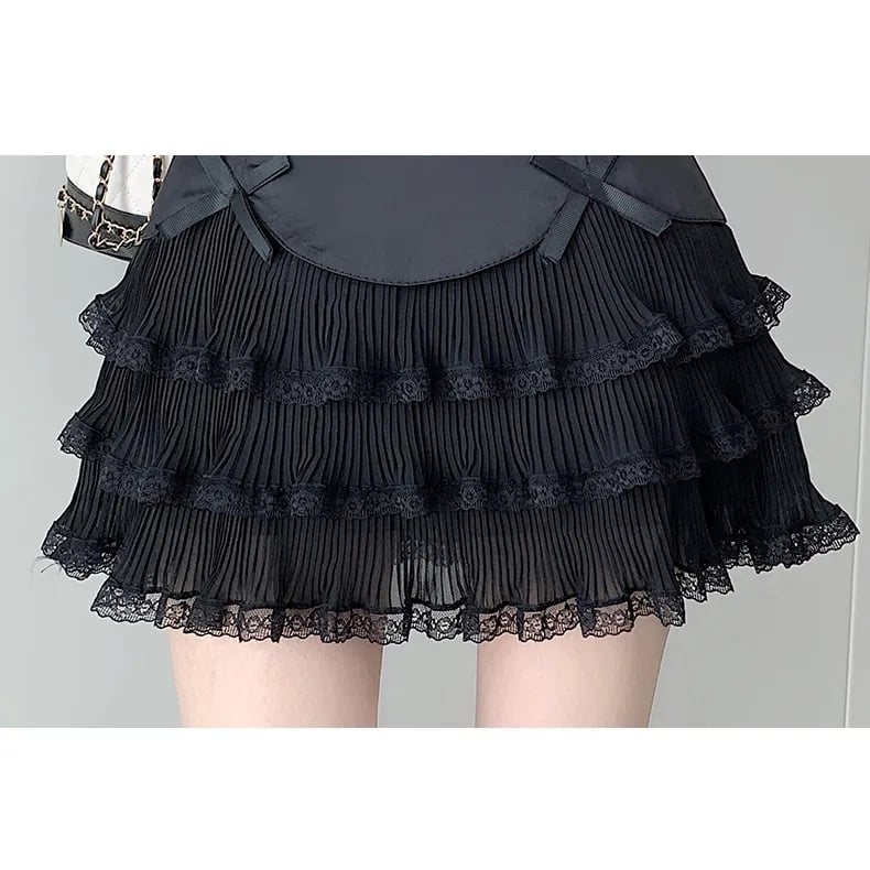 Chiffon Bow Pleated A-Line High Waist Mini Skirt