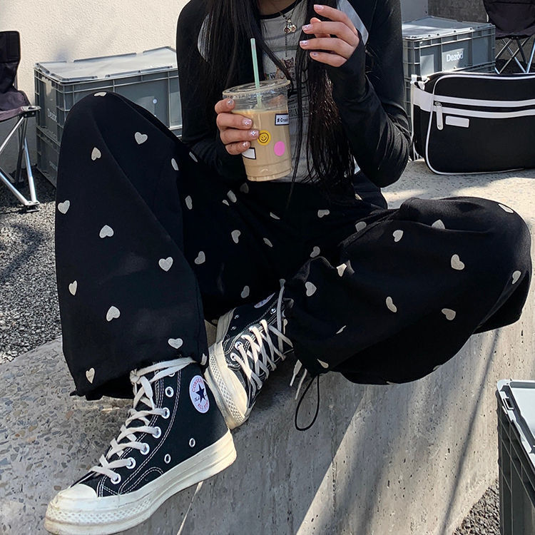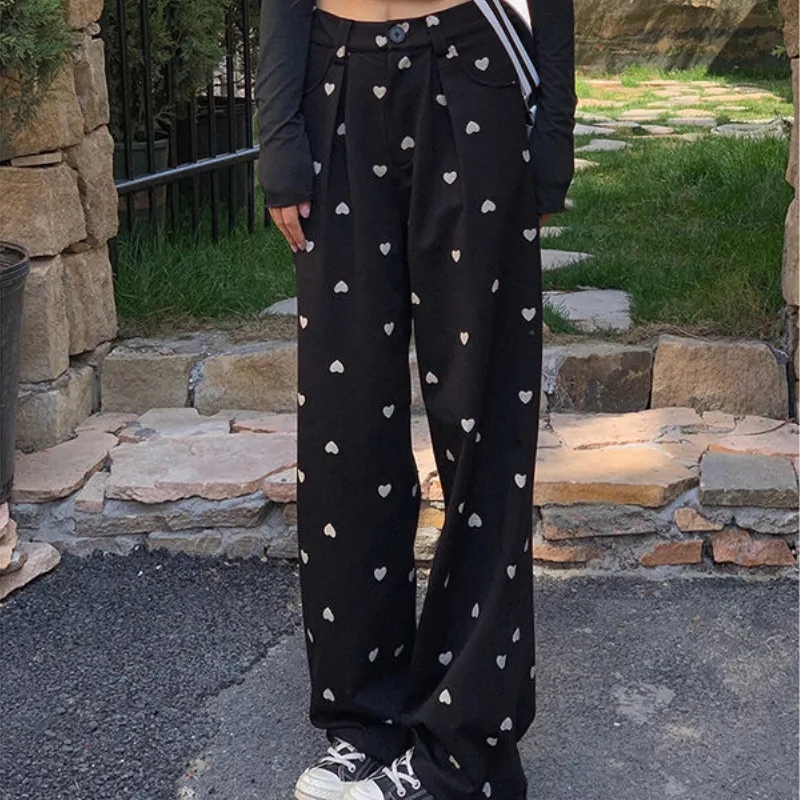 Black Heart Loose High Waist Pants