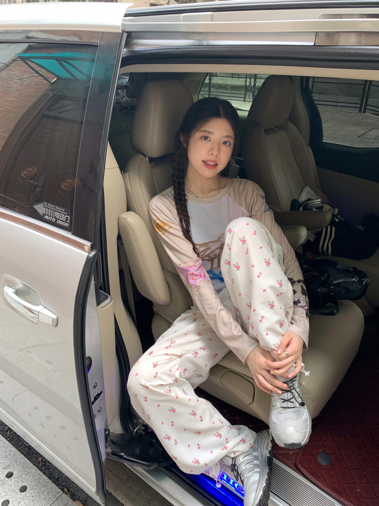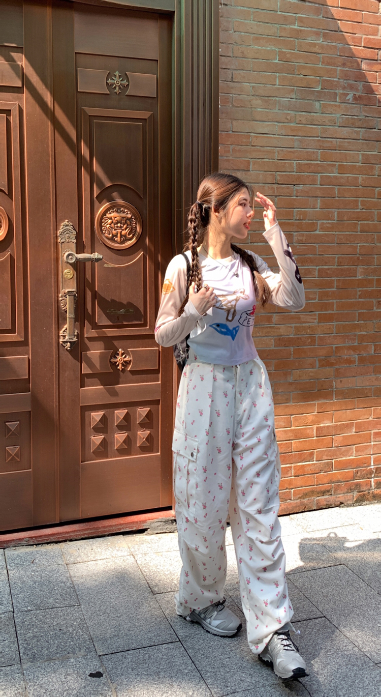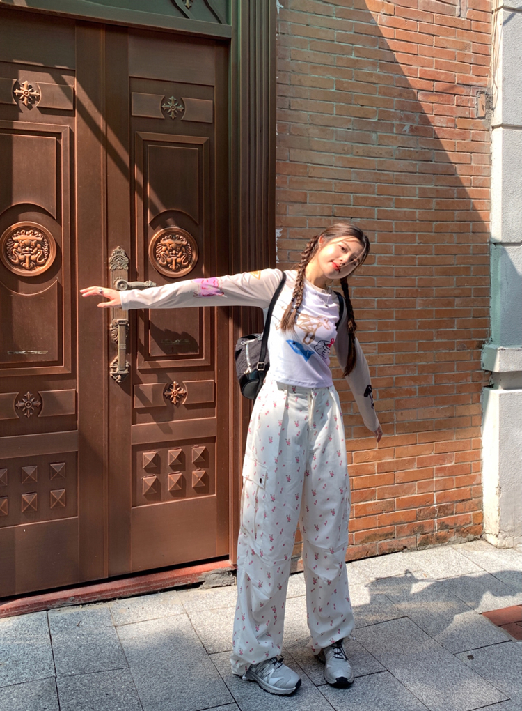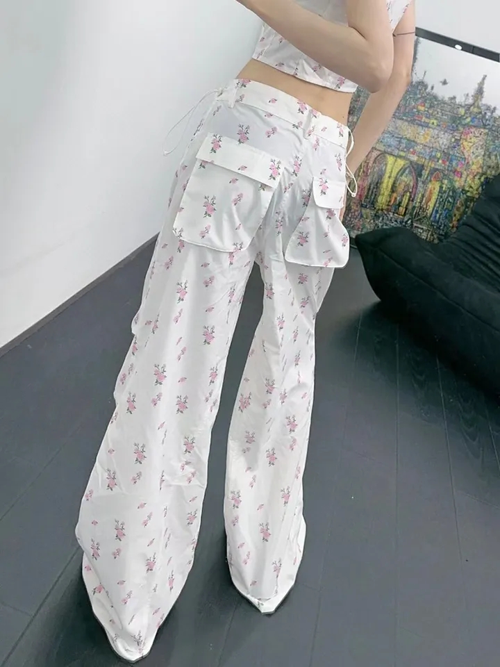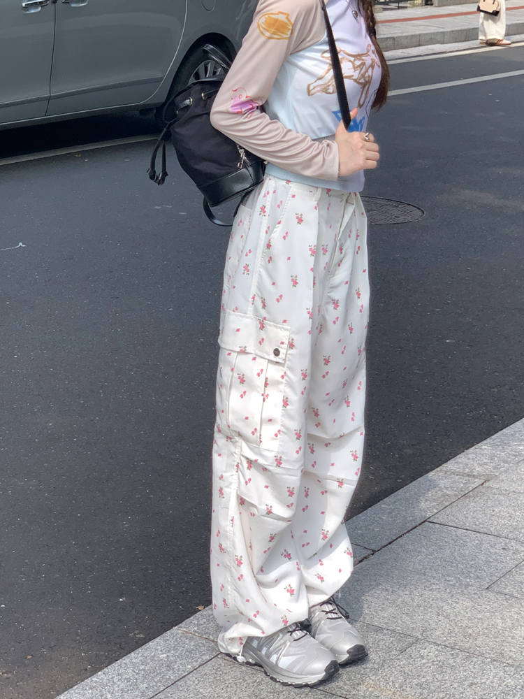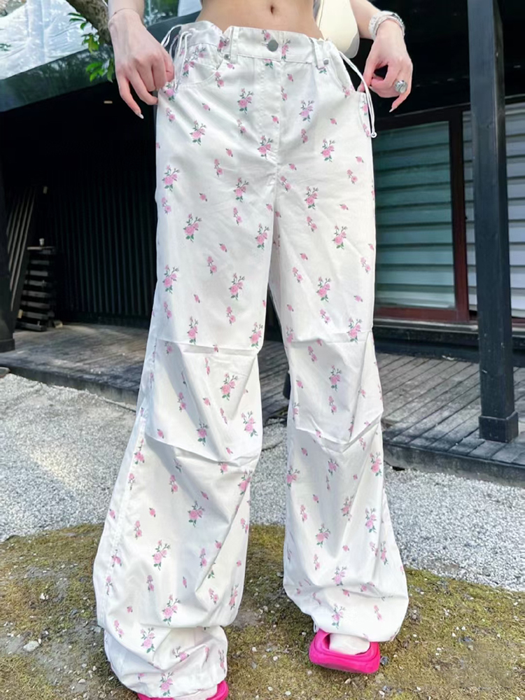 Floral Print Drawstring High Waist Pants
