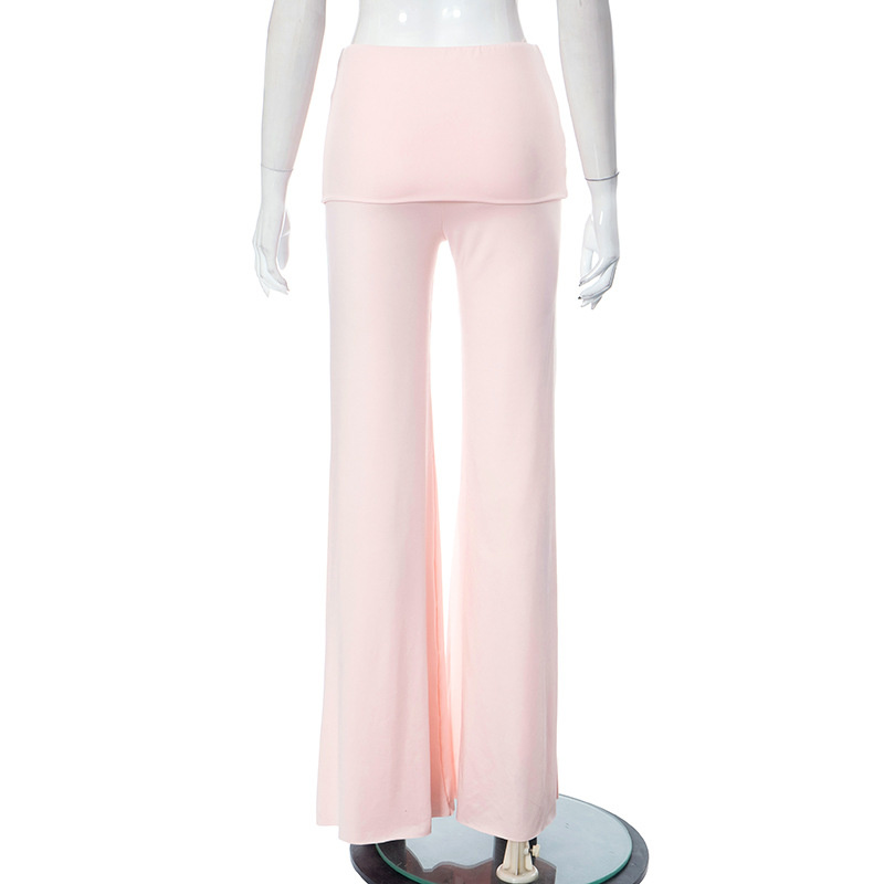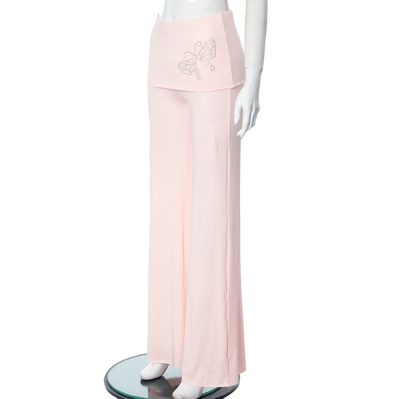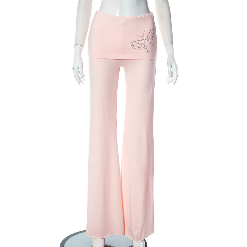 Pink Butterfly Rhinestone Fold Low Rise Flare Pants