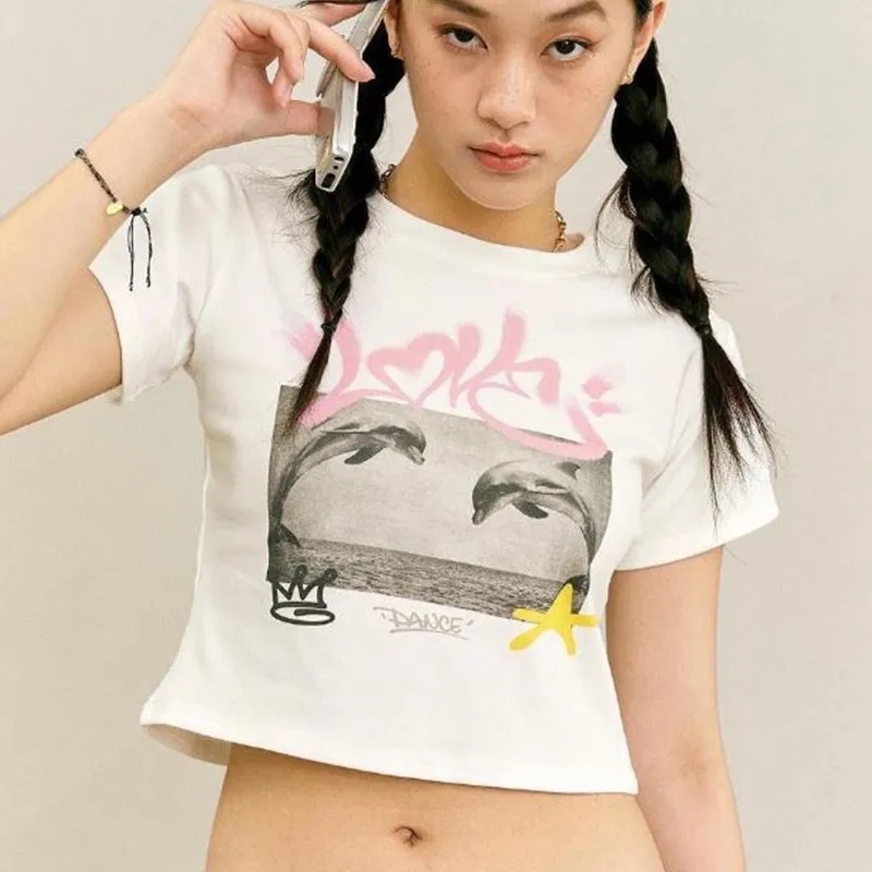 Dolphin Print Crop Top