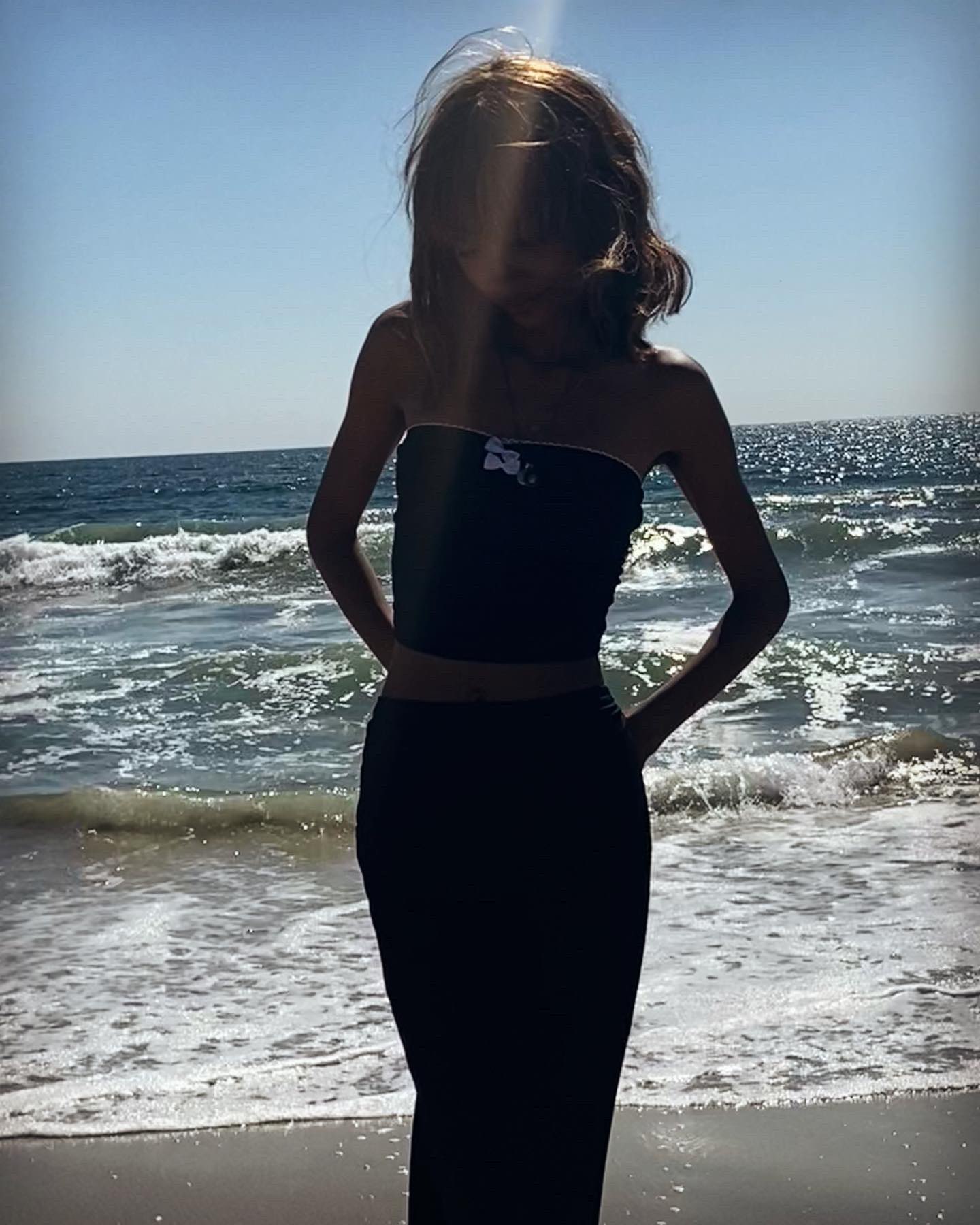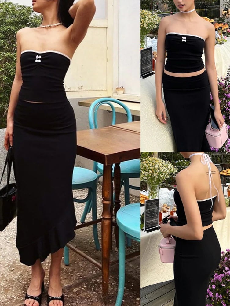 2PCS Black Lace Patchwork Tube Top + Maxi Irregular Skirt