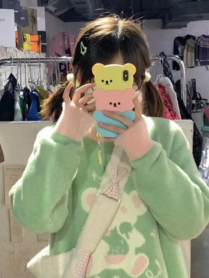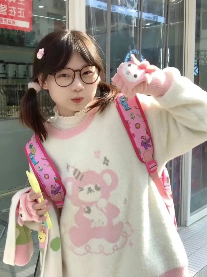 Bear Crew Neck Loose Sweater