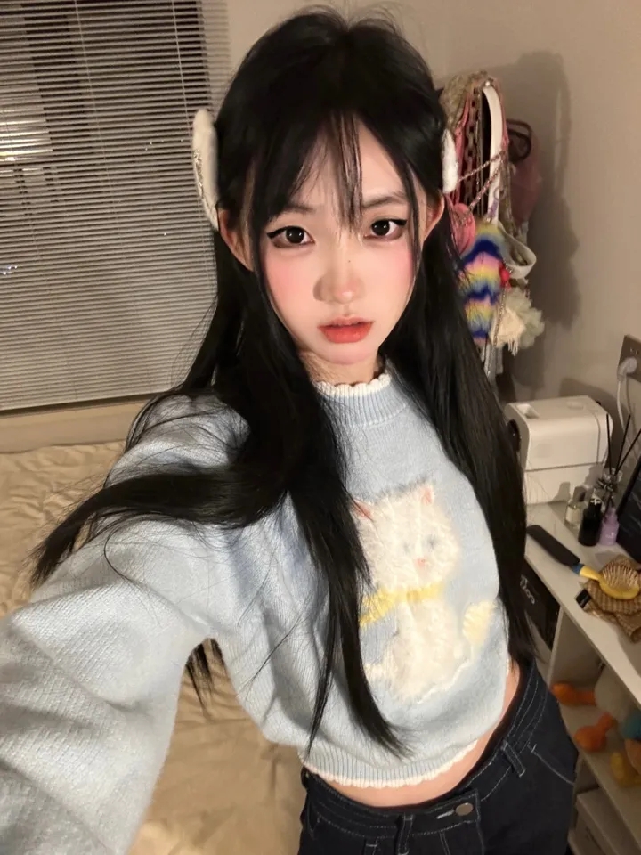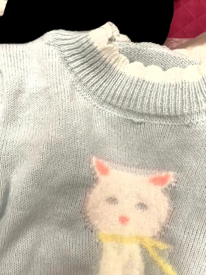 Kitten Print Cropped Sweater