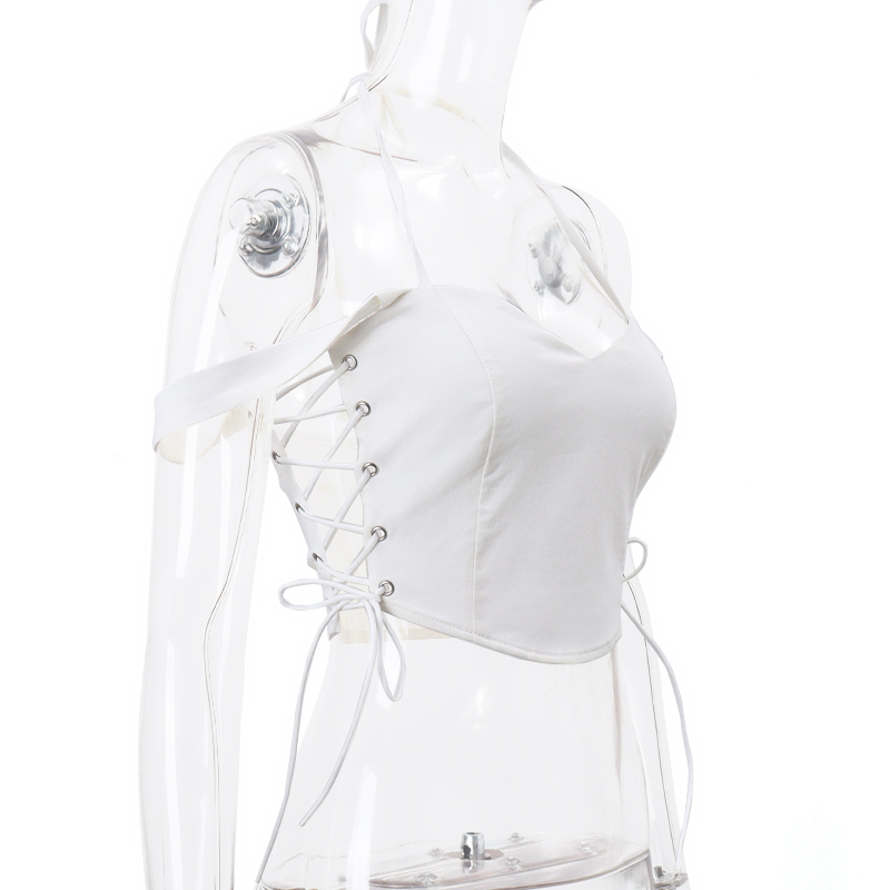 White V Neck Side Tie Up Crop Top
