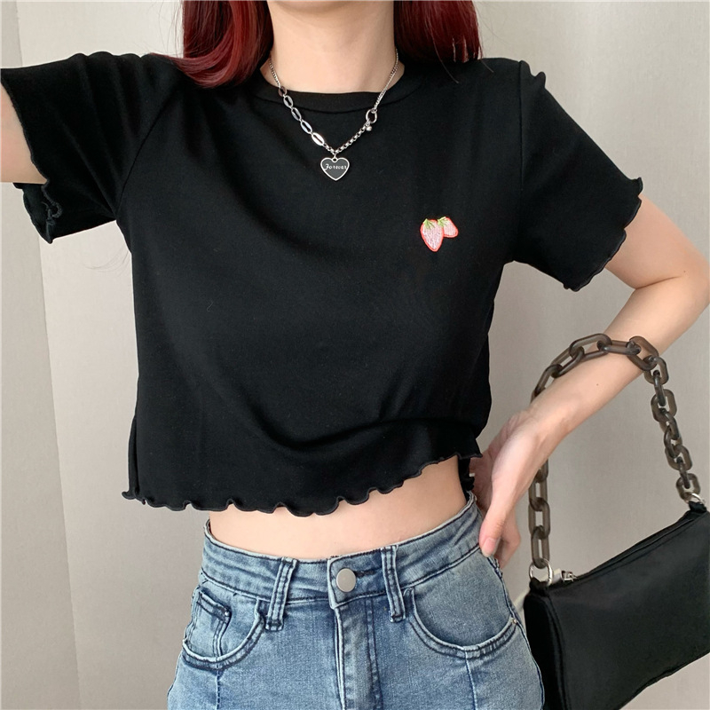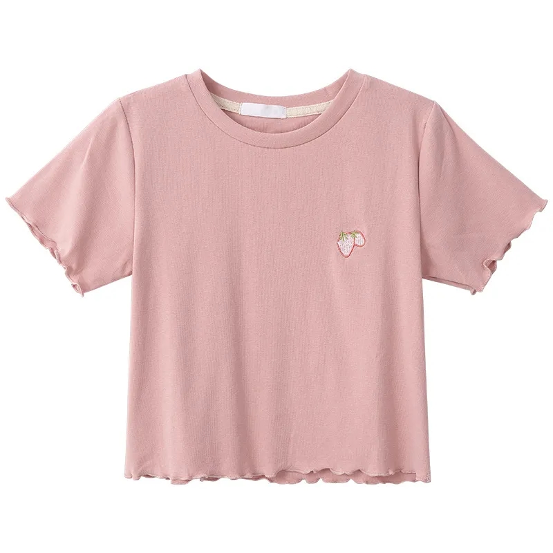 Strawberry Embroidery Ruffle Short Sleeve Shirt
