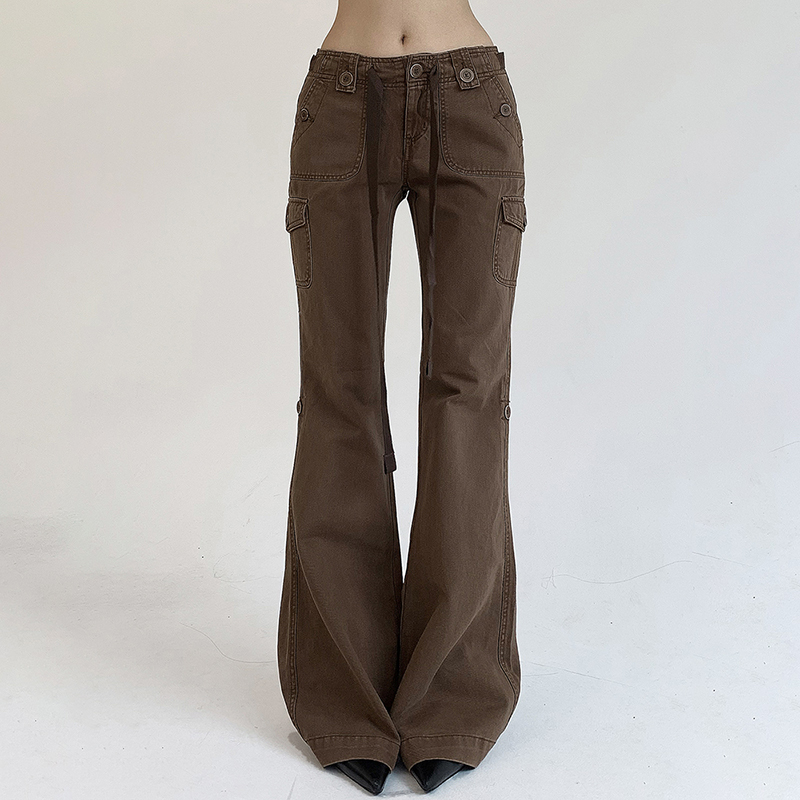 Brown Flare Boot Cut High Waist Trousers