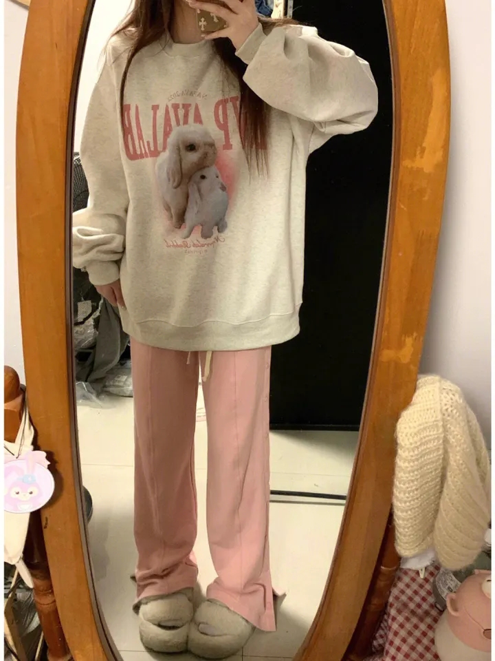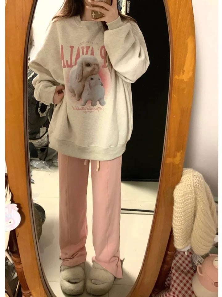 Rabbit Print Crew Neck Sweatshirt
