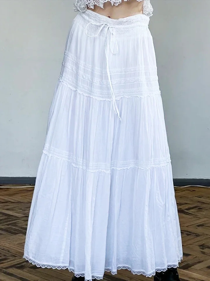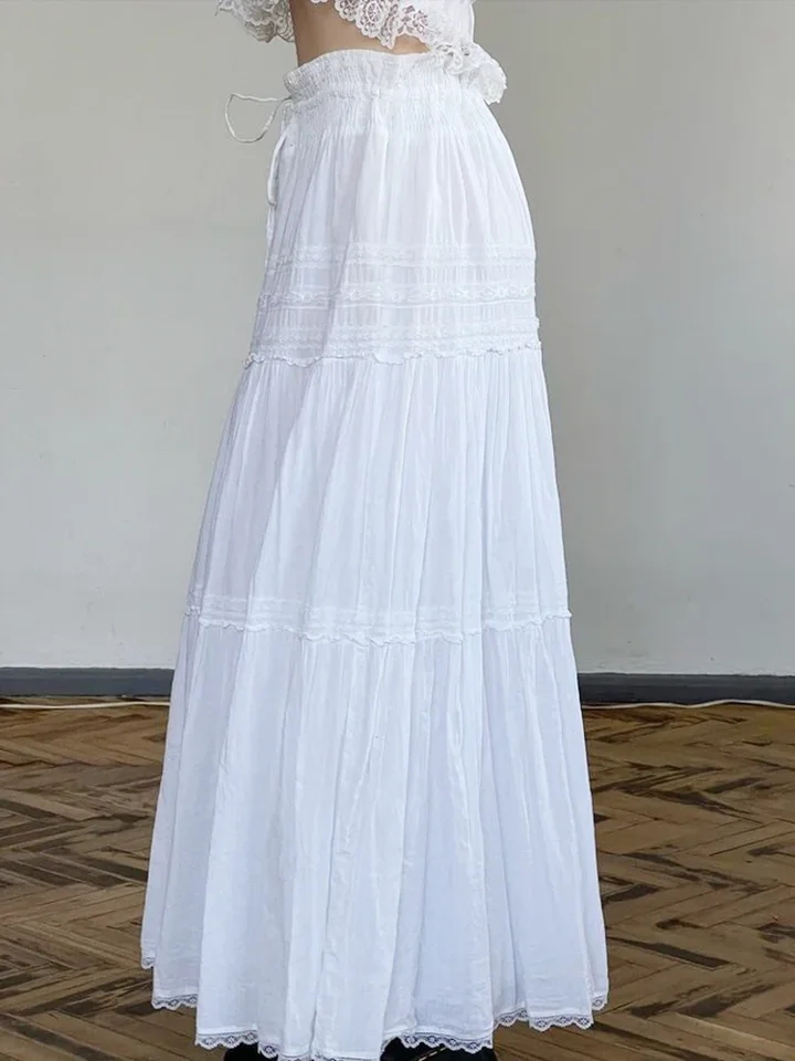 White Low Waist Maxi Skirt